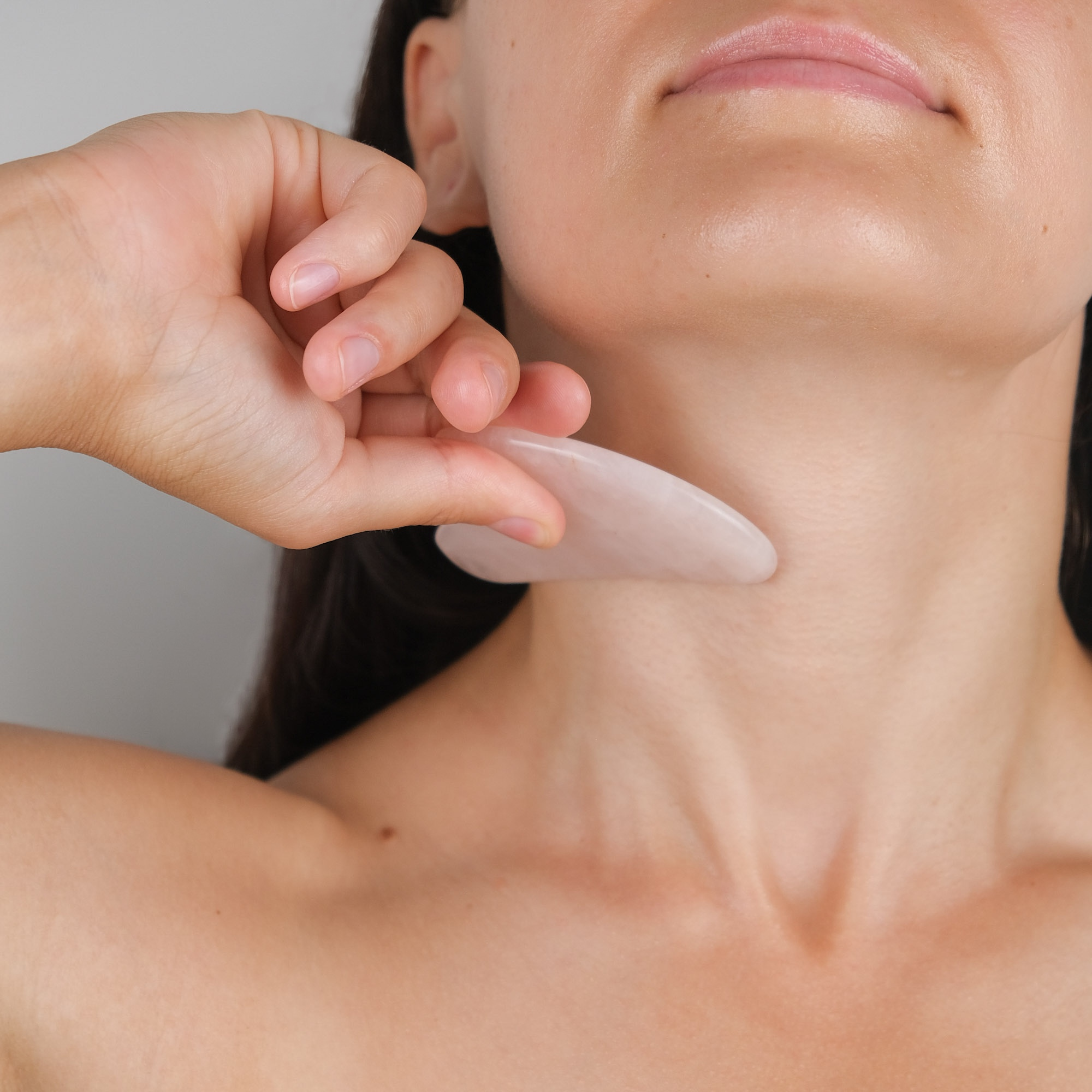Гуаша (Gua Sha) перекладається як “зішкребти все погане”. Ця техніка використовує спеціальні пластини-скребки з натурального каменю (кварц, нефрит, онікс) або дерева/металу. Скребок дозволяє дістатися глибших шарів м’язів і фасцій, ніж пальці.