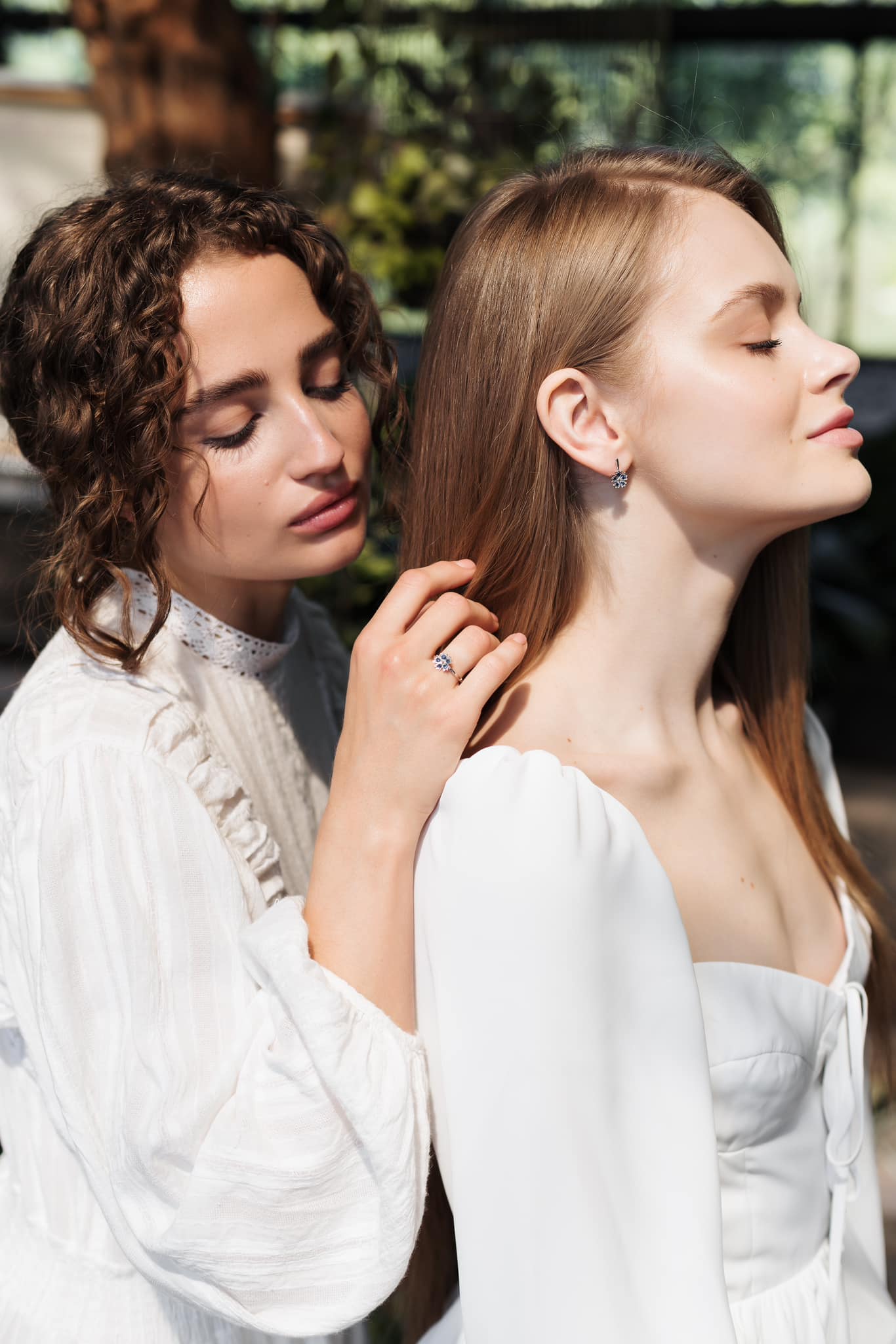 • срібні каблучки на заручини. Вони вирізняються витонченим дизайном, часто з використанням вставок з напівдорогоцінного або штучного каміння;